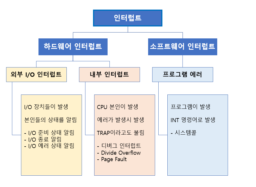 이렇게 다양한 인터럽트 유형을 통해 시스템은 다양한 상황에 빠르게 대응하며, 사용자의 요청이나 하드웨어의 상태 변화에 신속하게 응답할 수 있게 됩니다.